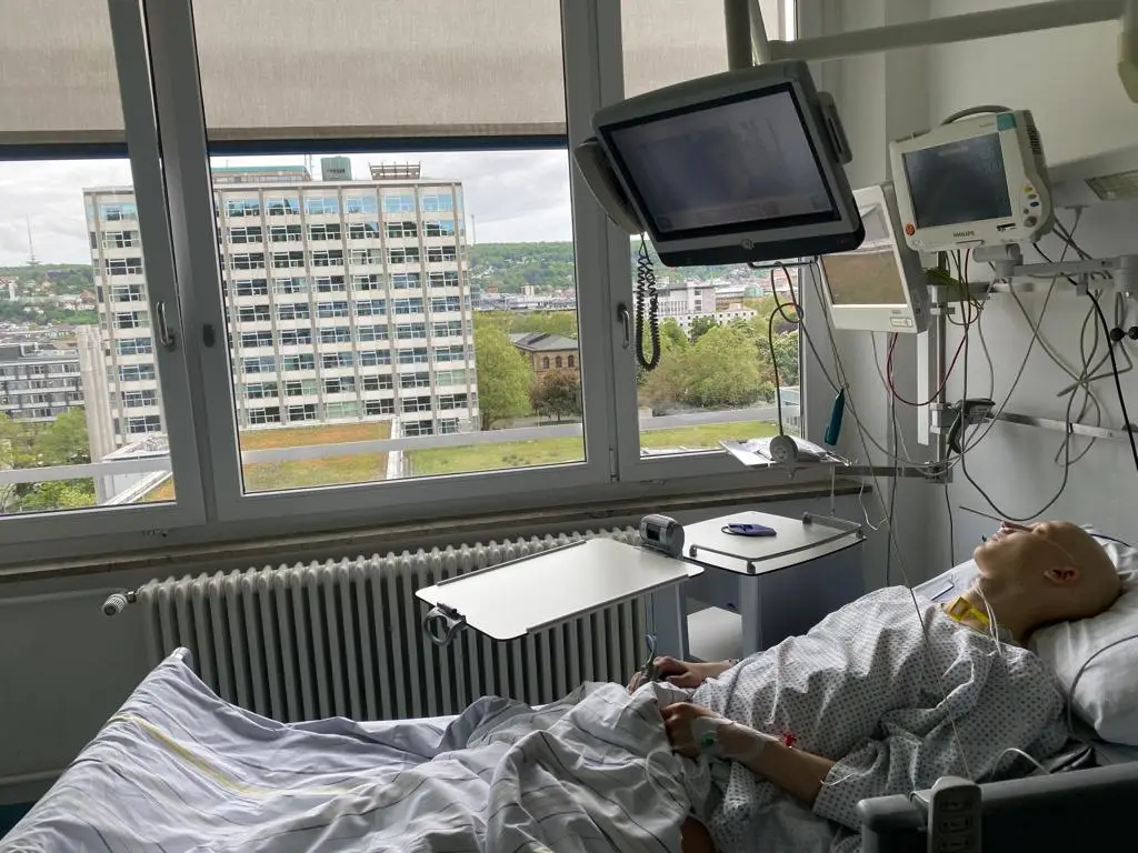 Mit 22 Jahren lag der Wirtschaftsstudent monatelang für eine stationären Chemotherapie mit 14 Zyklen im Klinikum Stuttgart – oft zu kraftlos, um aufstehen zu können.