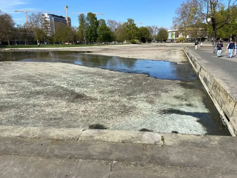 Diese Woche findet die große Kehrwoche im Eckensee vor dem Opernhaus statt. Nachdem das Wasser aus dem etwa 7700 Quadratmeter großen See abgelassen ist, machen sich die Mitarbeitenden der Wilhelma an die Reinigungsarbeiten und entfernen Schlamm, Algen und Unrat. Diese Prozedur findet zweimal im Jahr statt.